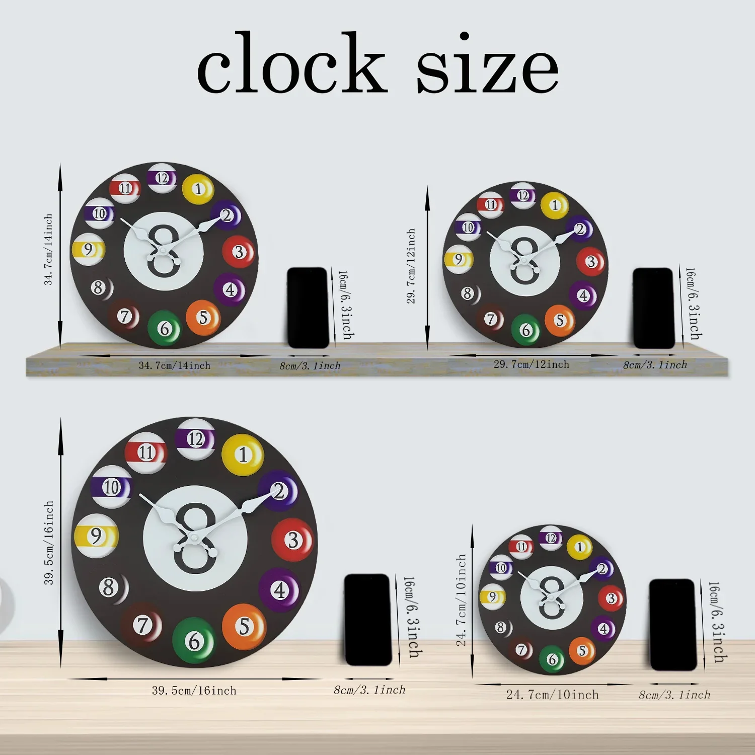 Erhältlich in 10, 12, 14 und 16 Zoll, sodass Sie die passende Größe für Ihre Wand auswählen können.