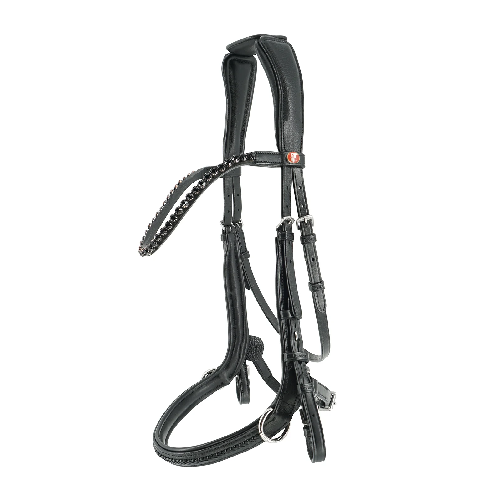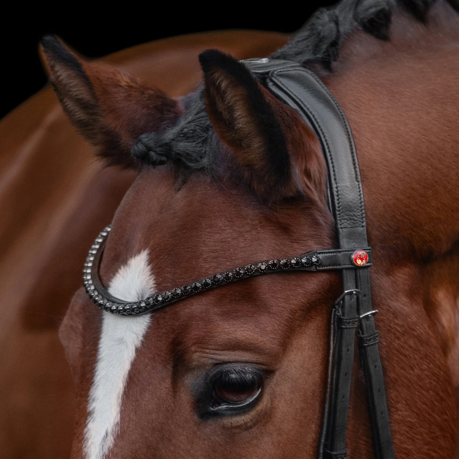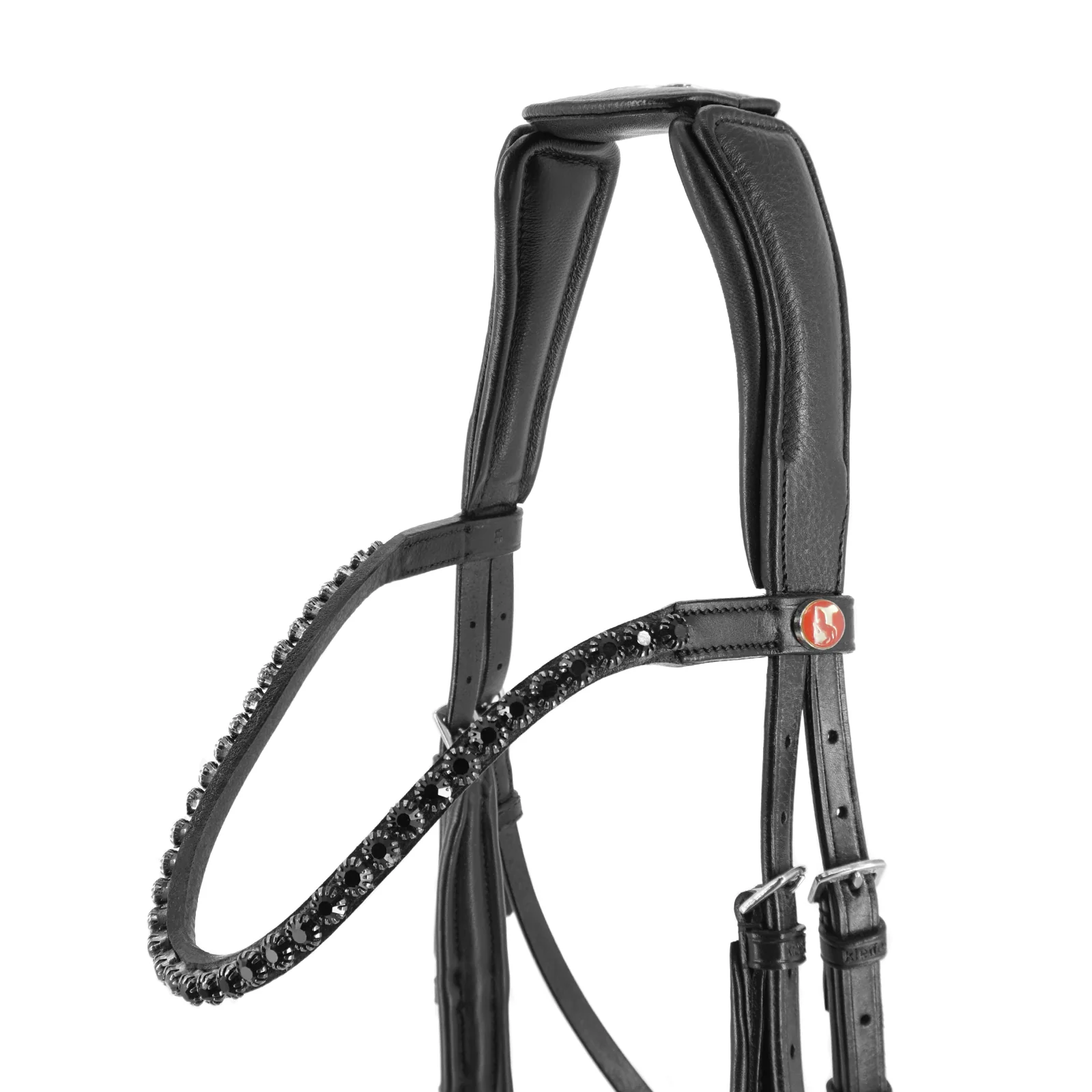 Neben den funktionalen Eigenschaften überzeugt Kieffer Ultrasoft® Ava auch durch ästhetische Details: Das geschwungene Stirnband mit schwarzen Kristallen und die geflochtene Verzierung am Reithalfter verleihen diesem Zaum eine elegante Note.