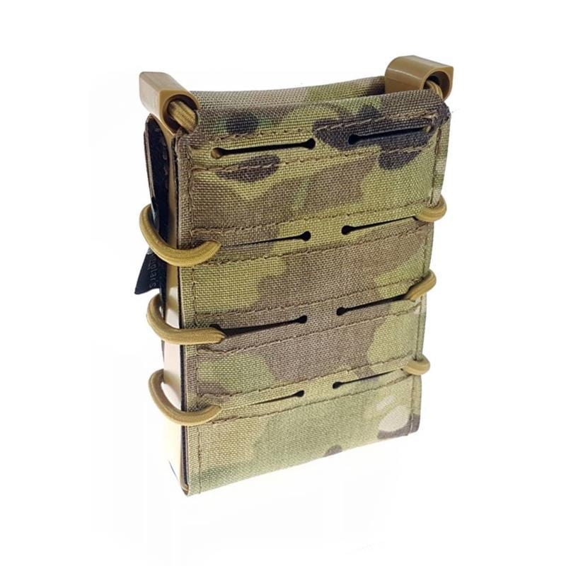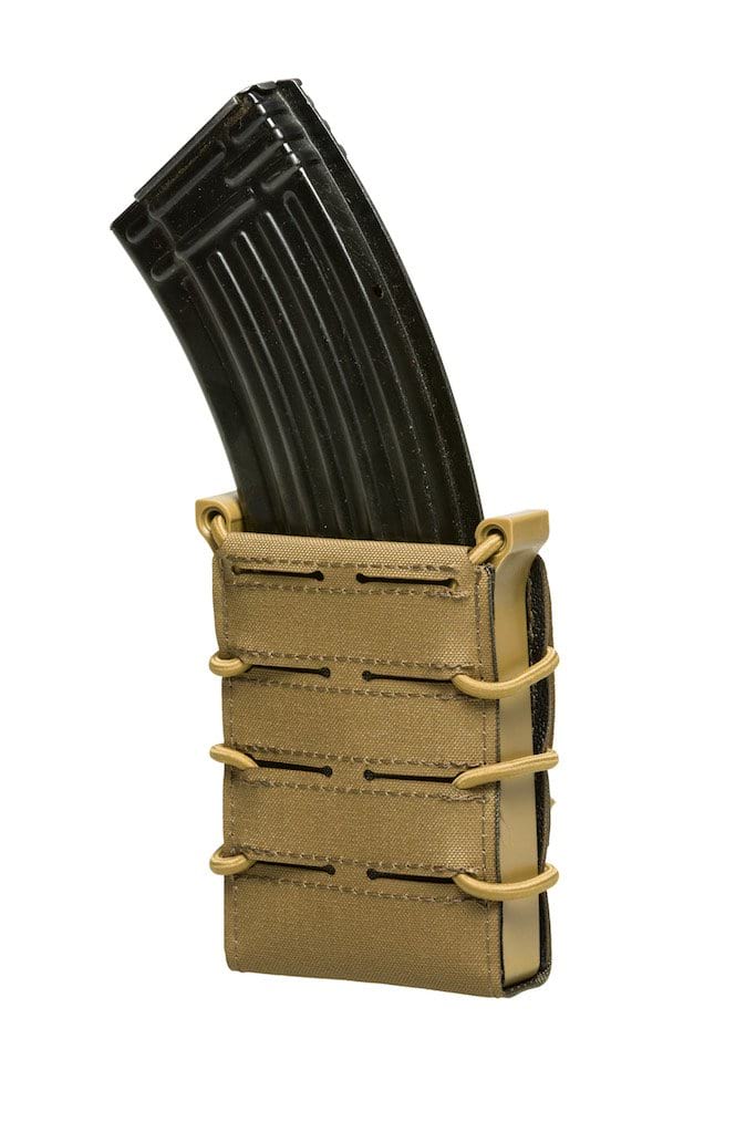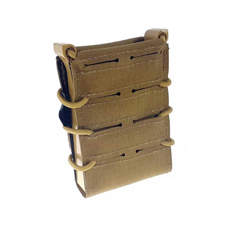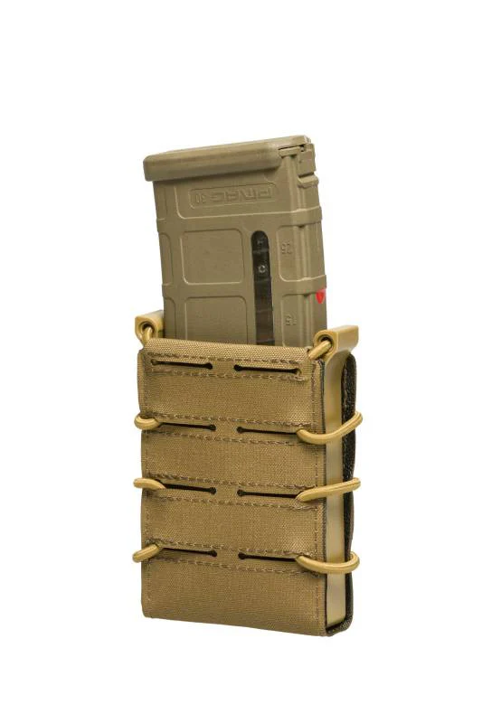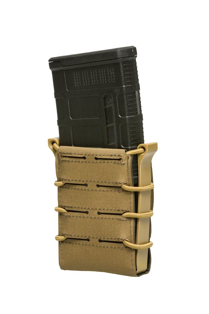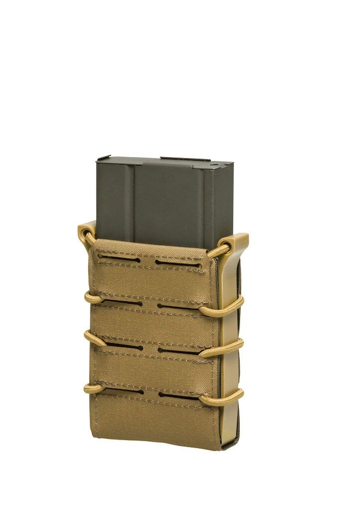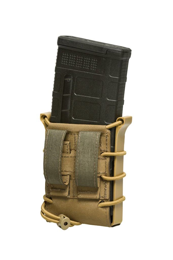 Eine typische offene Magazintasche für .308 und .223 Magazine. Sie nimmt idealer Weise Magazine für AR Systeme auf. Bei G36 Magazinen empfiehlt es sich die „Nippel“ an der Seite abzunehmen, um eine reibungslose Nutzung zu gewährleisten.