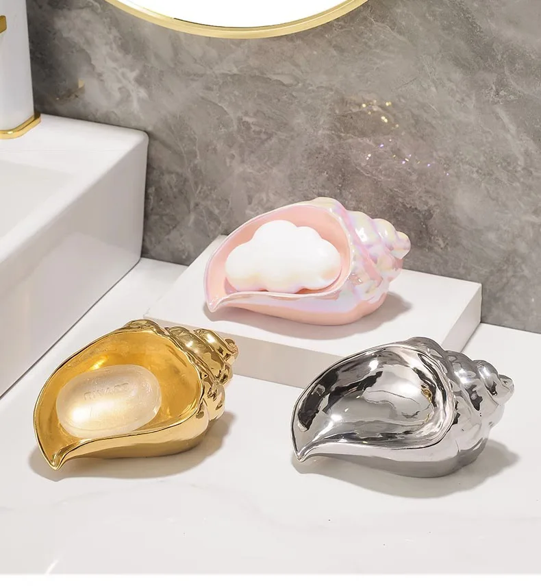 Muschel Keramik-Seifenschale – Stilvoller Seifenhalter mit Abflussdesign für Bad, Waschbecken oder Dusche