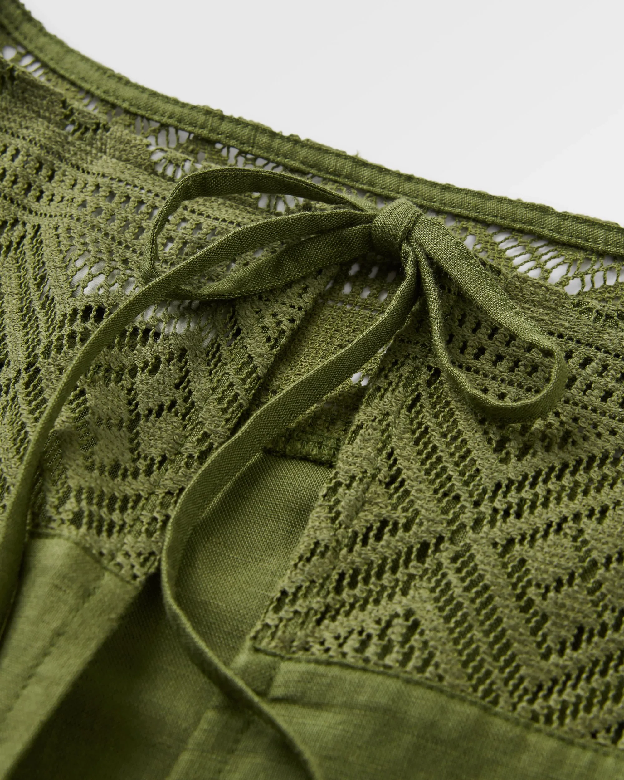 Das Sono Leinen Strandkleid hat eine lockere Passform, einen offenen Rücken mit Bändern und eine Häkelborte an den Schultern. Dieses Kleid steht für mühelosen Stil und Komfort, gefertigt für Eskapismus.