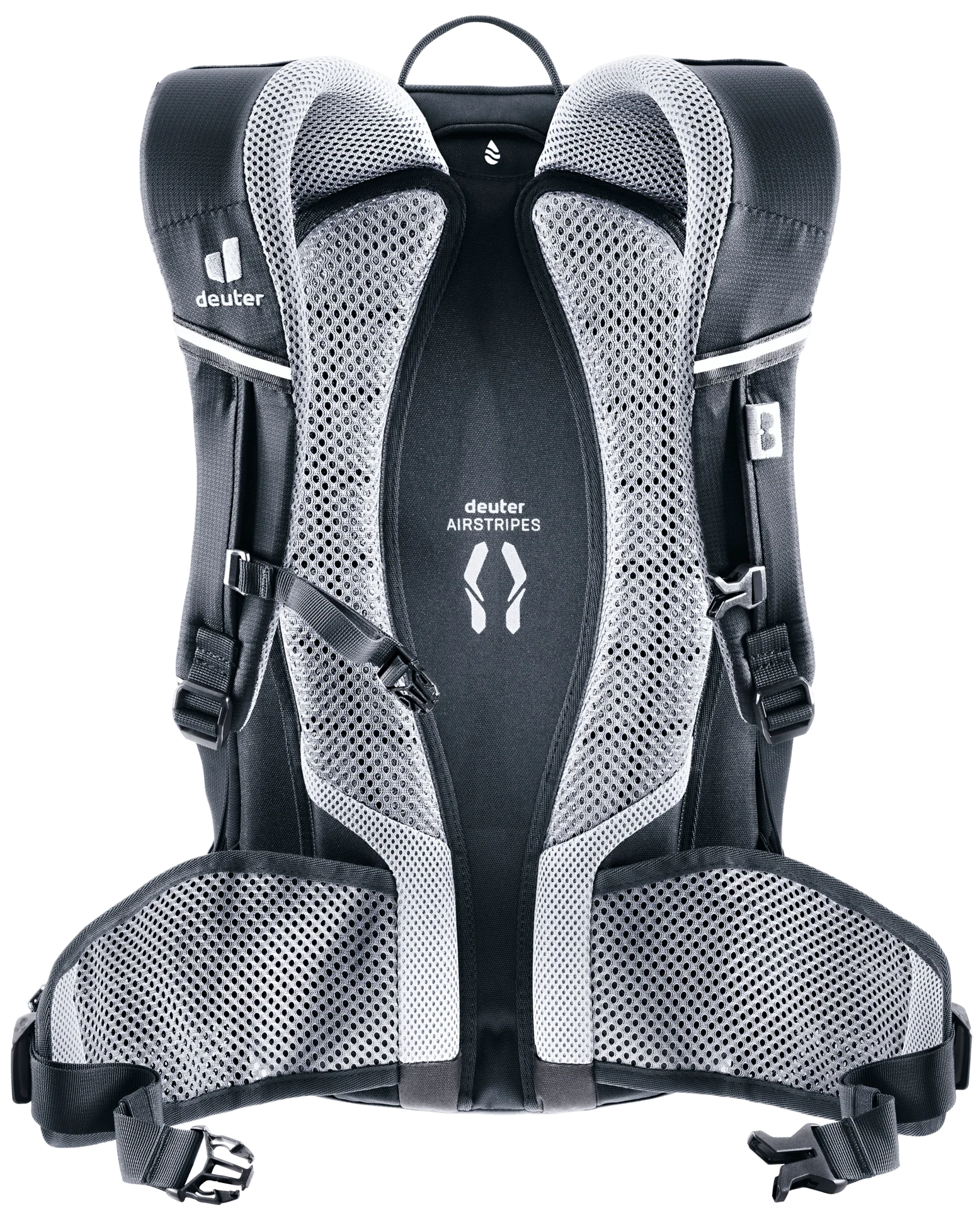 1. 3D AirMesh gefütterte Schultergurte. Anatomisch geformt, garantieren sie komfortablen Bewegungsspielraum. Der Brustgurt sichert die Passform zusätzlich.