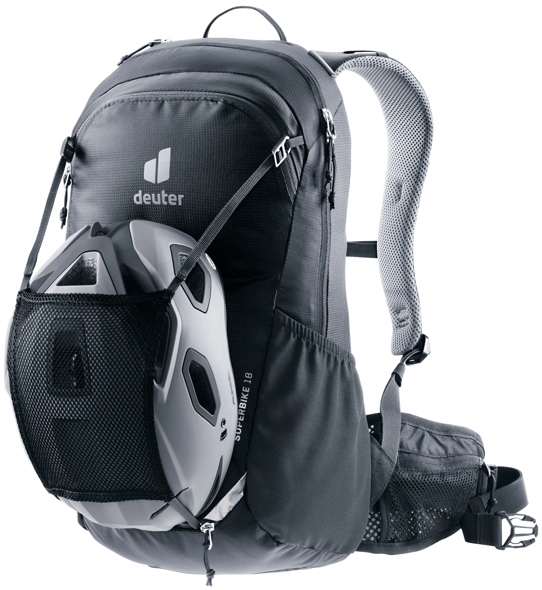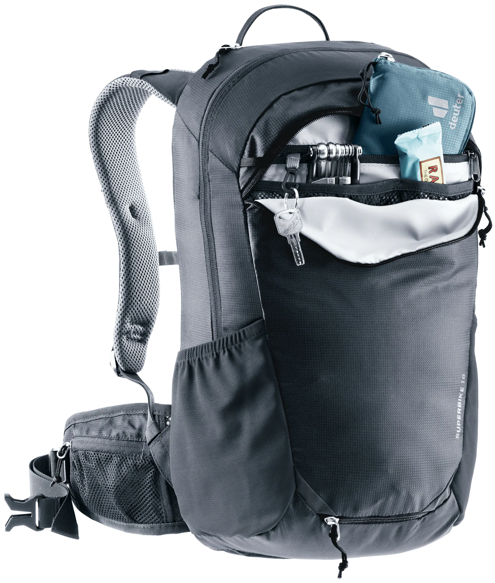 Der Rucksack Superbike 16 SL von deuter bietet Bikern dank des Airstripes-Rückensystem gute Belüftung, kompakten Sitz und eine optimale Lastübertragung während der Tagestour. Alles, was dabei nicht fehlen darf, findet Platz und Ordnung in den schnell zugänglichen Seiten- und Hüftflossentaschen, der praktischen Fronttasche, dem geräumigen Hauptfach mit Rundbogenöffnung und Innenfächern und den Befestigungsschlaufen. Weitere unschlagbare Features des Rucksacks: die integrierte Windschutzweste, die signalfarbene Regenhülle und die integrierte Sitzmatte.