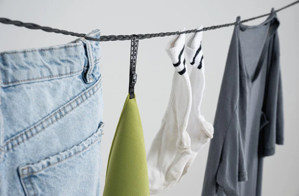 Die COCOON Travel Clothesline aus sehr elastischem, geflochtenem Naturlatex bietet ein schnelles, kompaktes System zum Trocknen von Wäsche auf Reisen. Kleidungsstücke können zum Trocknen ganz einfach in das Geflecht gesteckt werden, es bedarf keiner zusätzlichen Wäscheklammern.